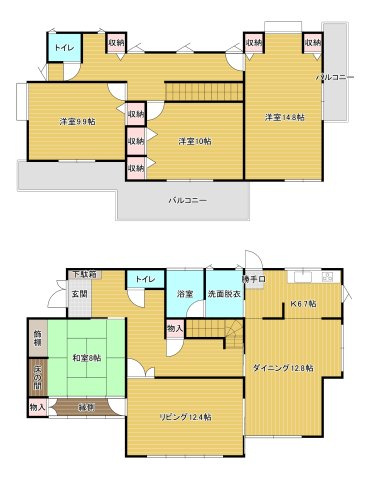 L 12.4帖 1室 / D 12.8帖 1室 / K 6.7帖 1室 / 和室 8.0帖 1室 / 洋室 10.0帖 1室 / 洋室 9.9帖 1室 / 洋室 14.8帖 1室 / |