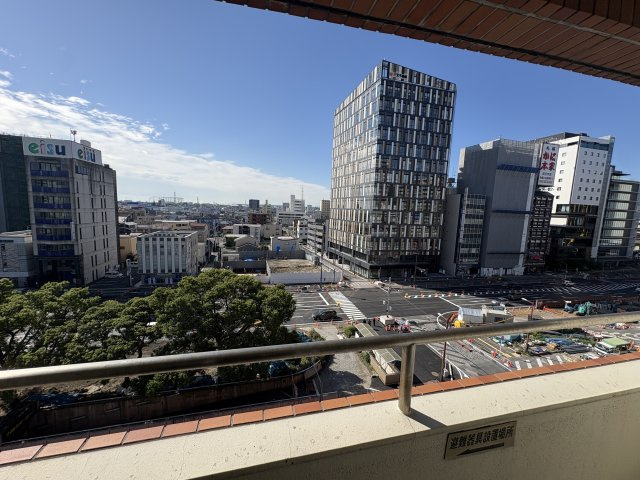 近鉄四日市駅徒歩約3分、南向きマンション7階にて駅前大通を一望。